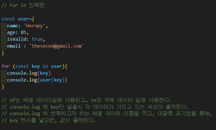 연산자와 구문 Ch 09. For, For of, For in 반복문