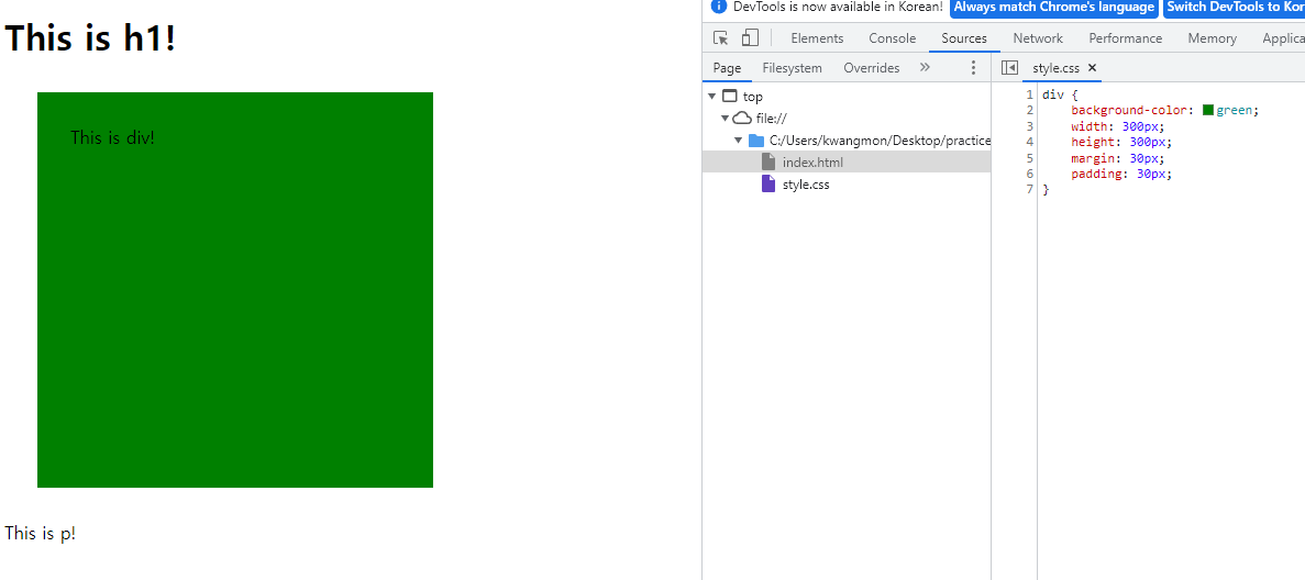ㆍ inline-block element는 위와 같이 명시적으로 헤당 element의 스타일을 display: inline-block로 지정해야한다.