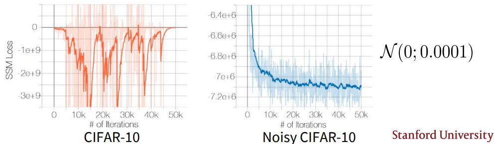 nosie를 더한 형태의 manifold data는 gradient 정의가 가능해진다. 실제로 noisy data에 대한 score mathcing loss는 더 안정적으로 수렴한다.