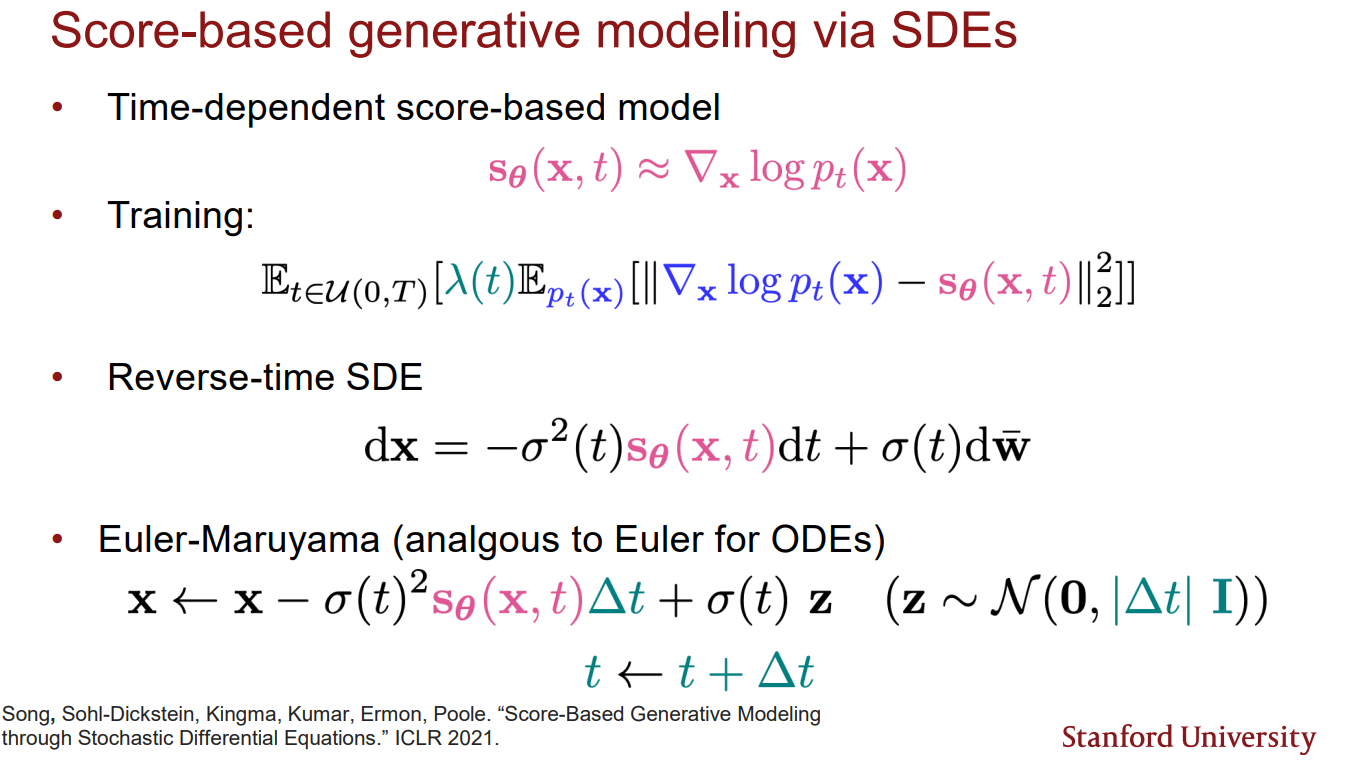 Reverse SDE의 앞쪽 term() 이 score function과 동일한 것을 확인 할 수 있다.