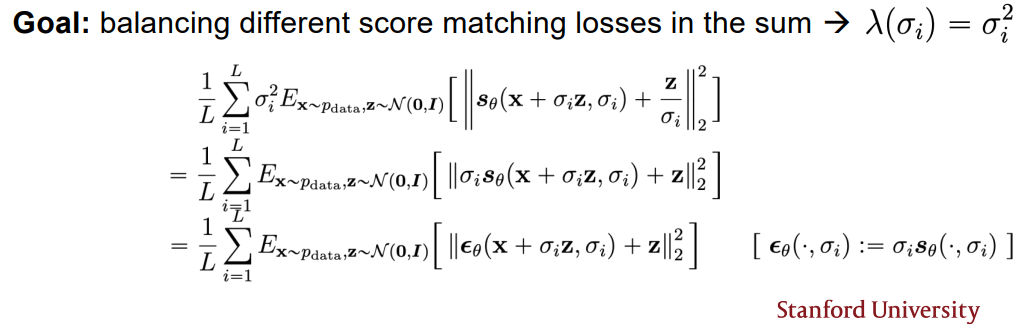Scale에 대한 weight는 각 score matching loss의 balancing을 맞출 수 있도록 로 설정하는 것이 좋다.