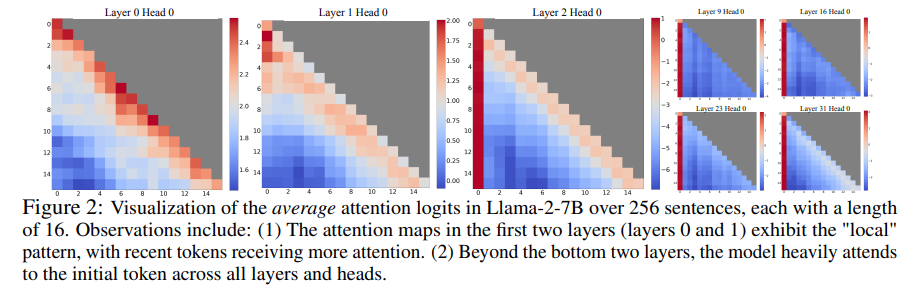 논문에서는 초기 token들의 attention score가 높은 이유에 대해 두 가지 가설을 세우고 실험을 진행했다.
