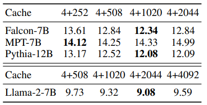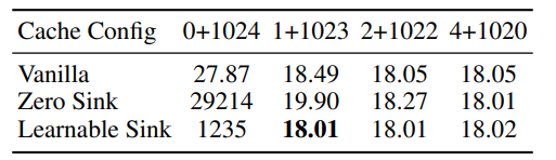 1~2 개의 initial token을 가지고는 완벽하게 ppl을 복원 하지 못했다. 실험적으로 4 개의 token을 사용하는 것이 가장 효율적이라는 것을 밝혔다.