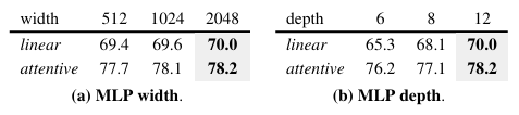 MLP head의 경우 depth가 깊어지는 것이 성능 향상 폭이 더 큼