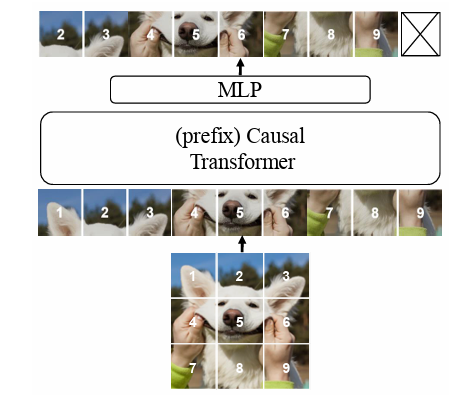 Prefix Transformer는 patch의 일정 앞부분을 prefix로 간주하고, 이 부분에 대해서는 casual mask를 적용하지 않는다. 그리고 autoregressive prediction에서 prefix는 제외된다.