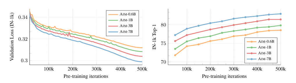 LLM과 유사하게 하기 위해 ViT를 이용하여 autoregressive objective pre-training을 수행하는 모델인 Autoregressive Image Model(AIM)을 제시한다.