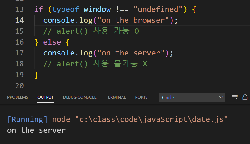 브라우저가 아닌 서버에 있어서 alert() 사용이 불가능하다는 것을 확인할 수 있었다.