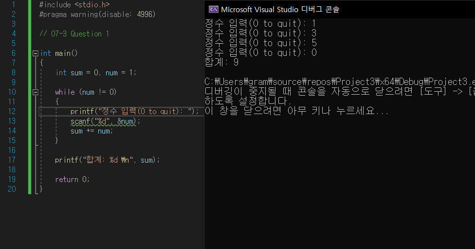 while(조건문)