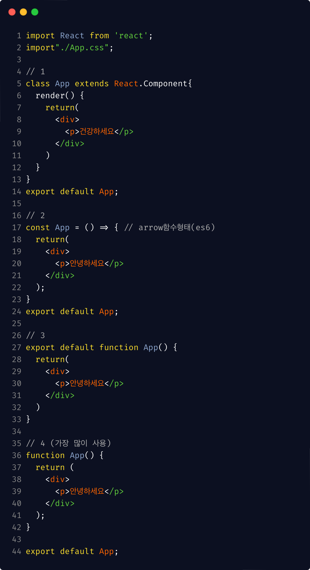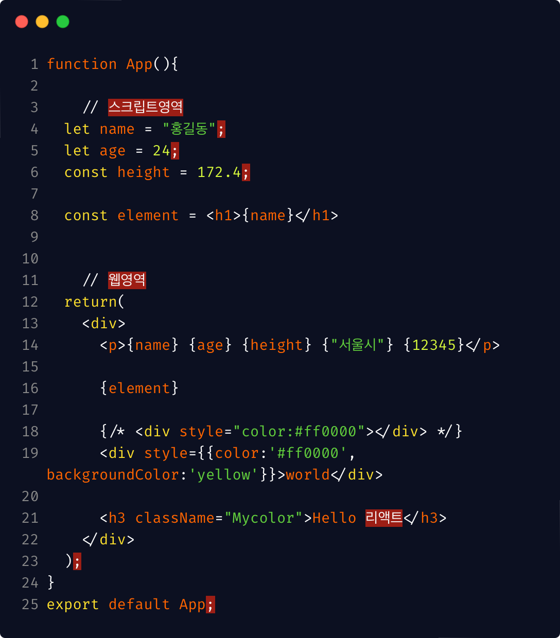 - 웹영역에서 주석은 {/ 여기에 작성 /}