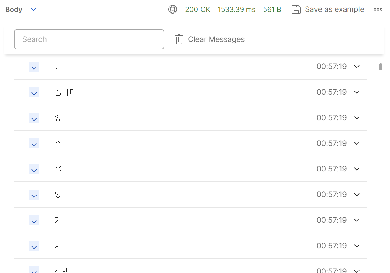 원래는 chatgpt의 응답을 기다렸다가 한번의 응답을 보내줬었는데, chatgpt처럼 한글자씩 버퍼에 들어오는데로 보여줄 수 있도록 수정을 하기로 했다.