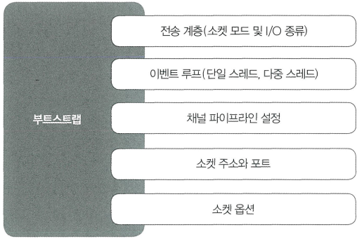 - 부트스트랩 설정은 크게 이벤트루프, 채널의 전송모드, 채널 파이프라인으로 나뉜다.