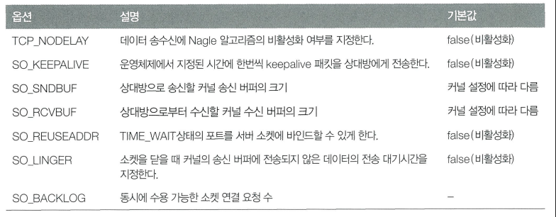 - 서버에 접속한 클라이언트 소켓 채널에 대한 옵션을 설정할 때 사용