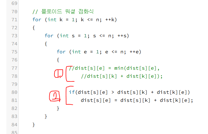 - i == j 인 경우에는 반드시 0으로 하고, 나머지는 INF 로