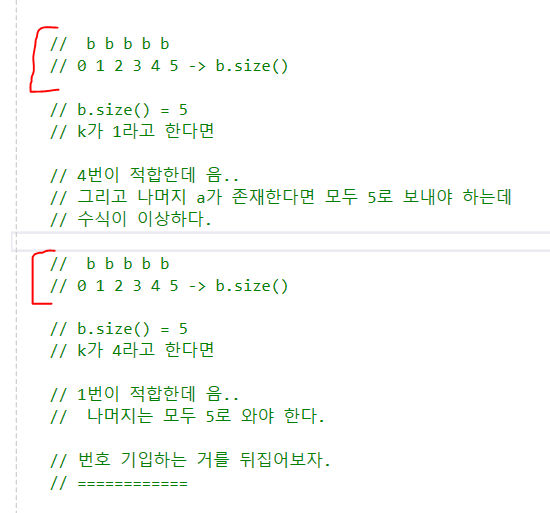 b를 먼저 배치한 상태에서 시작을 해야 카운팅 하기에 편하다.