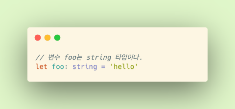 TypeScript는 아래와 같이 변수명 뒤에 타입을 명시하는 것으로 타입을 선언한다.