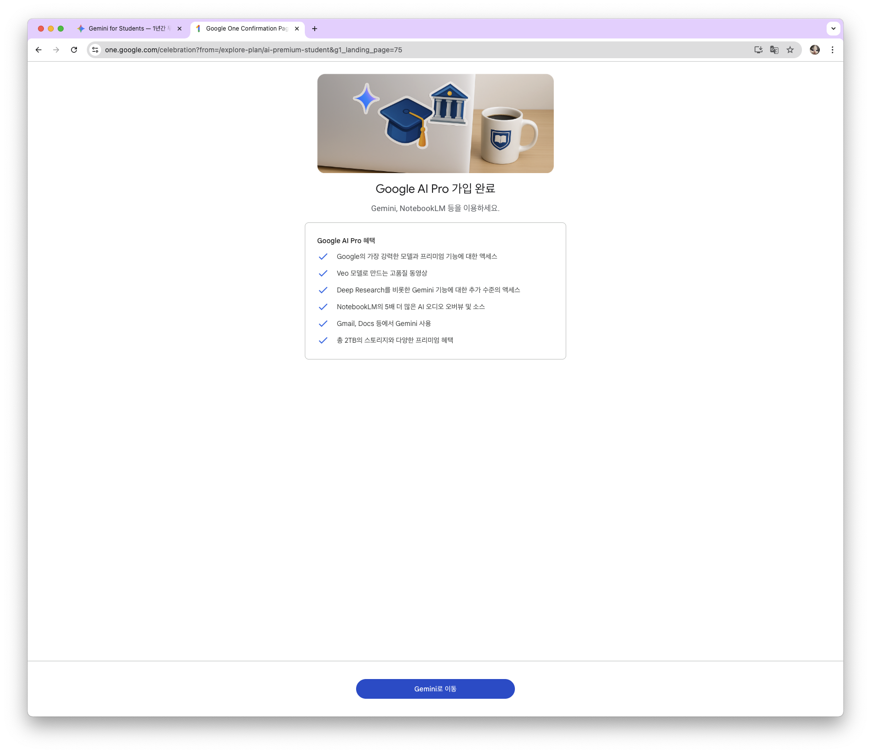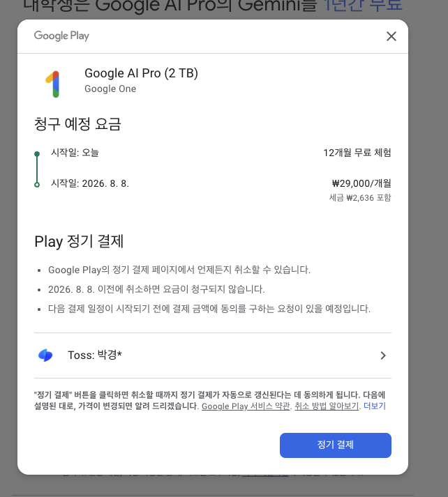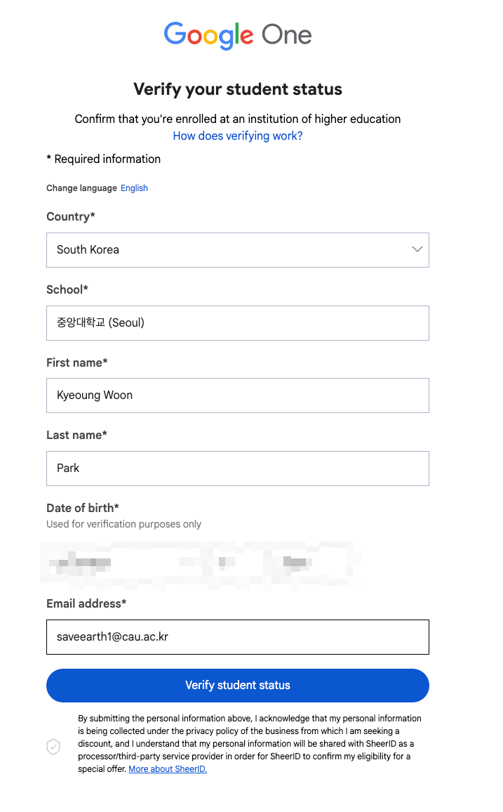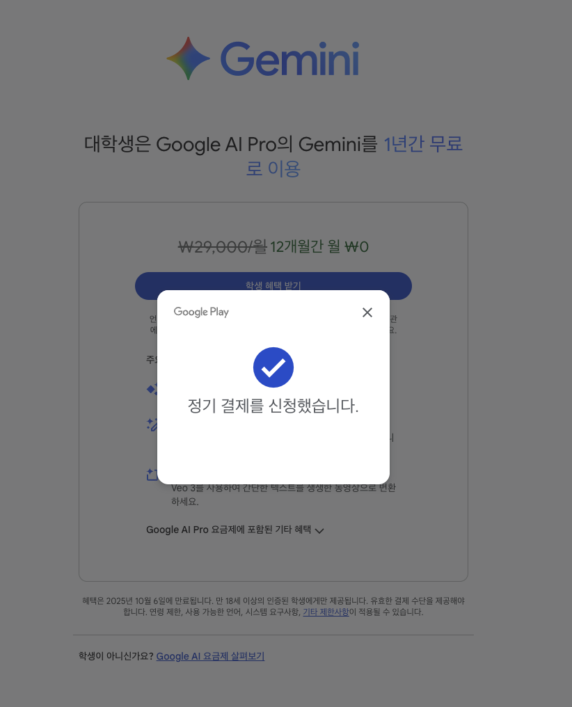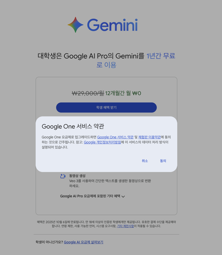 학생 혜택 받기를 클릭하면, Google One 관련 동의 화면이 뜬다. 동의해주자.
