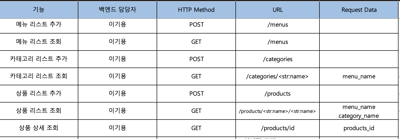 그래서 엑셀파일을 만들어 우리팀이 구현해야 될 사항과 맞춰야될 걸 한눈에 볼 수 있었다.
