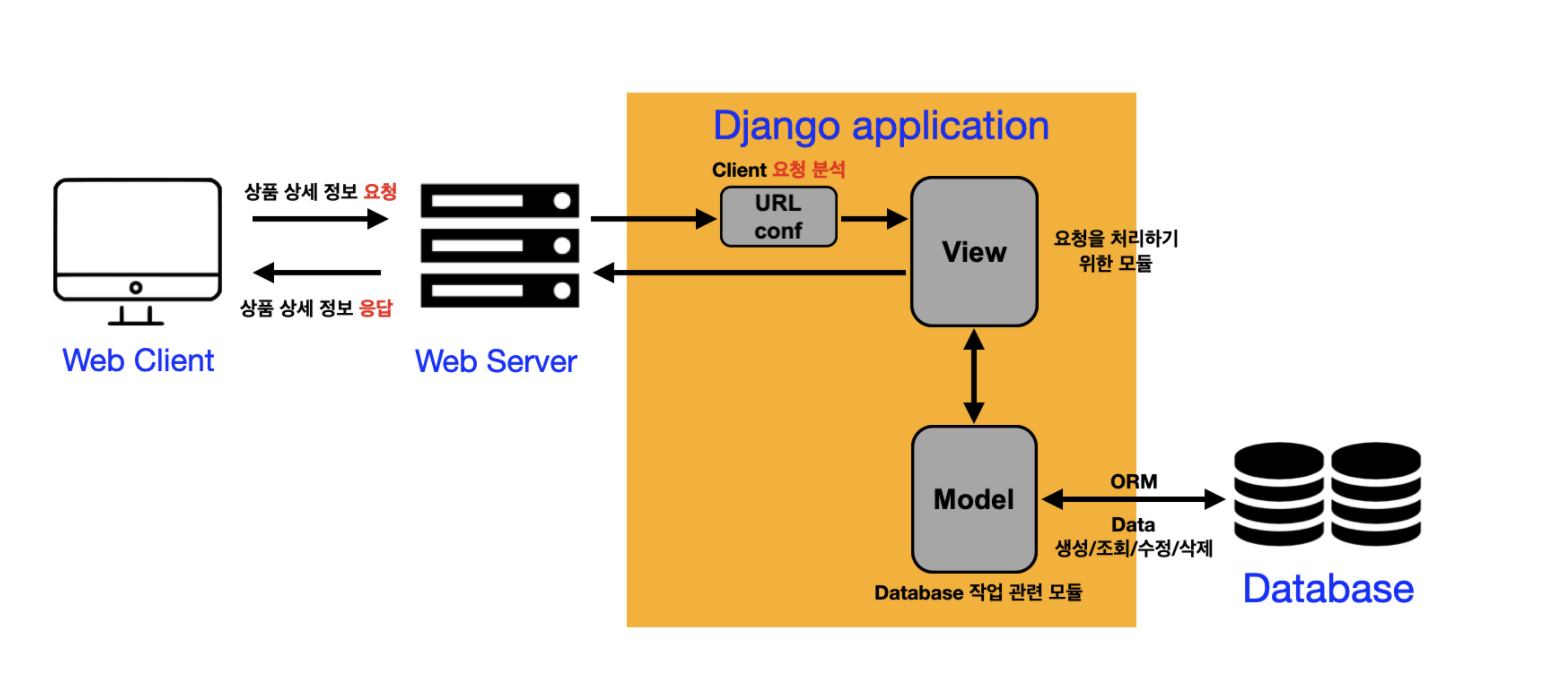 Django는 ORM을 이용하기 때문에 SQL Query를 작성하지 않으며, Model을 이용하여 DB에 접근한다.