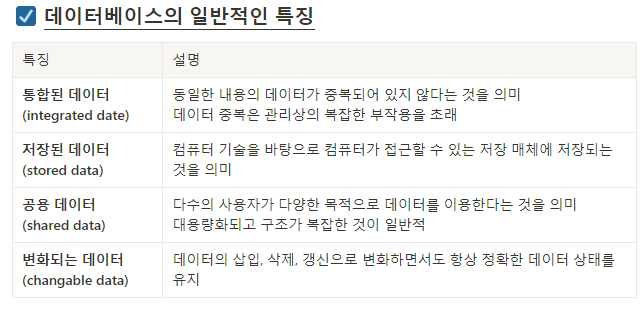 - 데이터베이스 종류에는 계층형, 네트워크형, 관계형, NoSQL 등이 있음