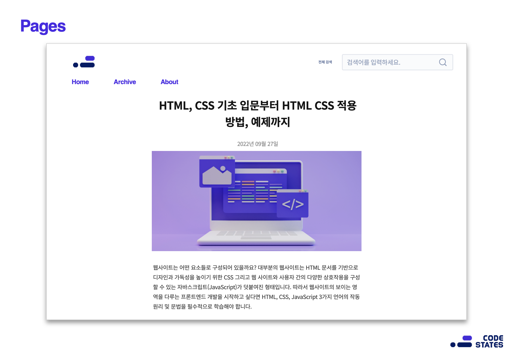 페이지는 복제한 템플릿에 실제 콘텐츠들을 채워 넣은 요소로 완성된 UI의 모습을 담고 있다. 그래서 아토믹 디자인에서 페이지(Pages)는 가장 구체적인 단계라고 볼 수 있다.