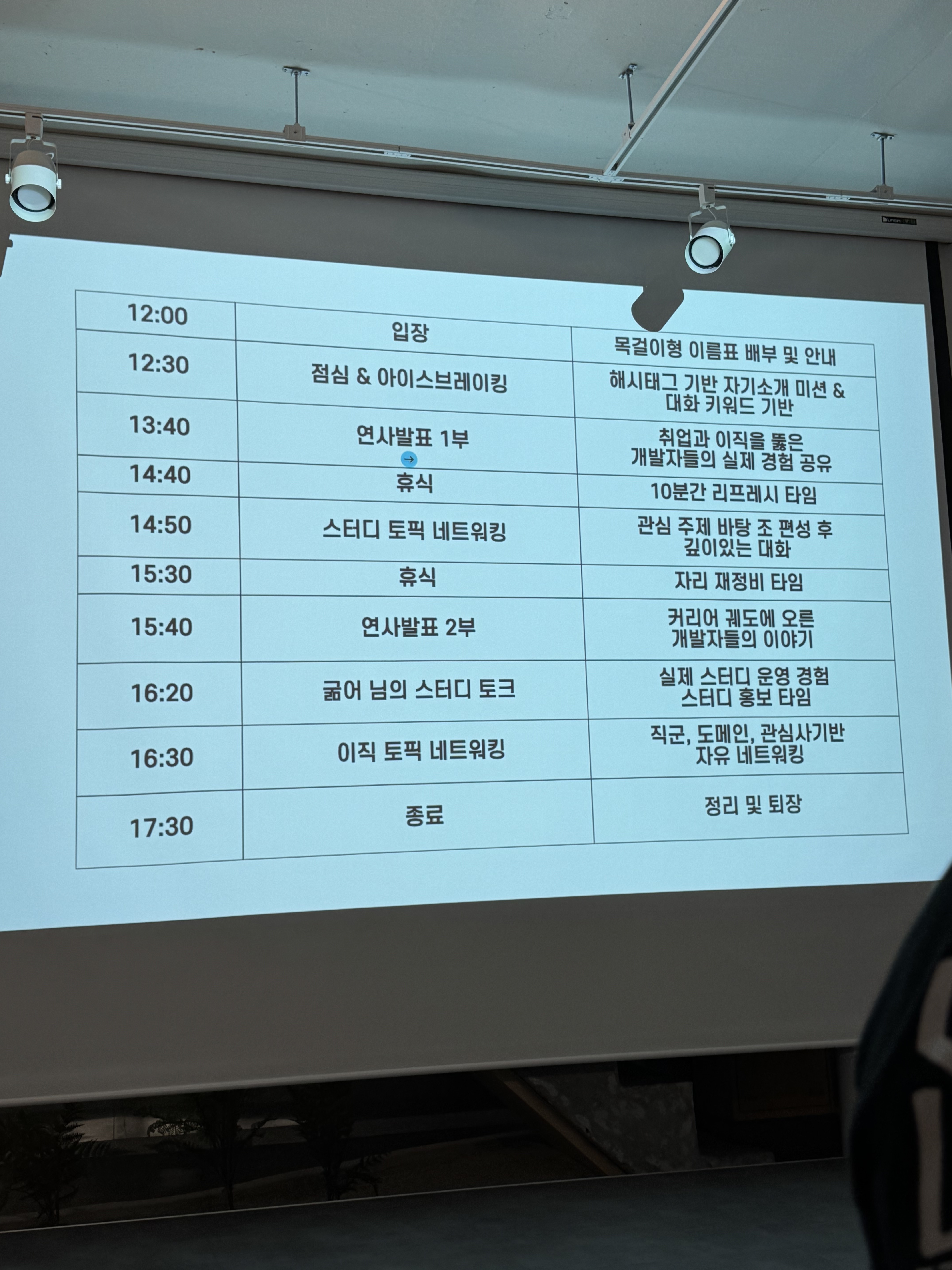 평소 이런 사람들과 소통하고 정보를 공유할 수 있는 자리에 관심이 많았어요. 나의 공부 방향이 올바른지, 좋은 개발자로 나아가기 위해 어떤 역량이 필요한지 등 여러 고민거리들이 많았는데, 이번 행사를 통해 궁금증을 해소하고 싶었거든요! 💭