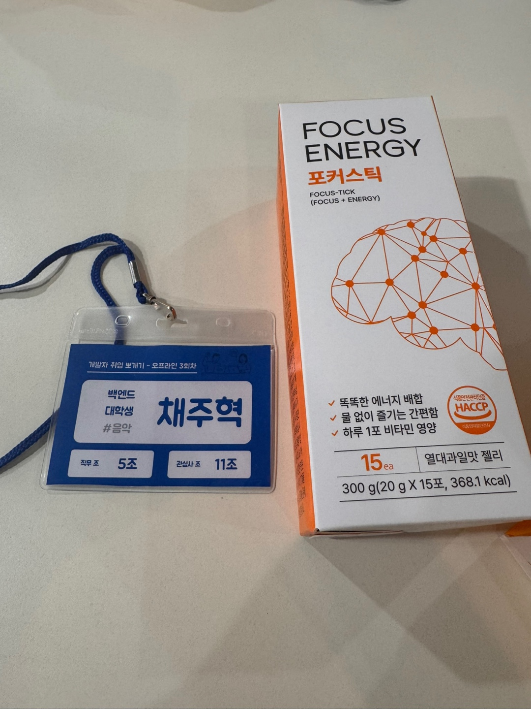 들어가니 명찰과 이번 PPL로 받은 영양 스틱을 받았습니다.