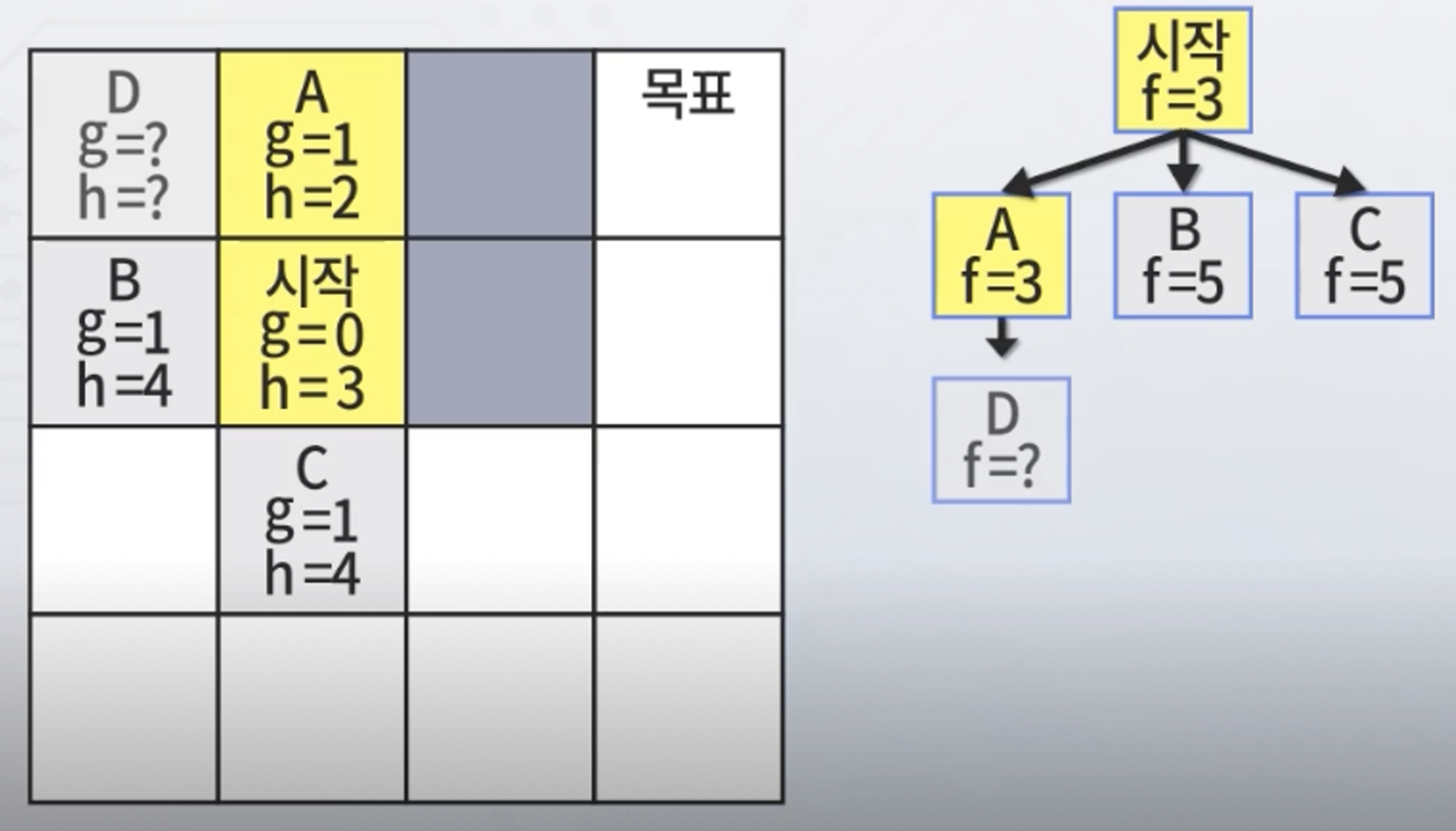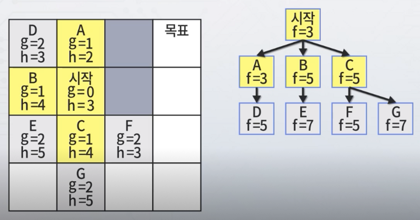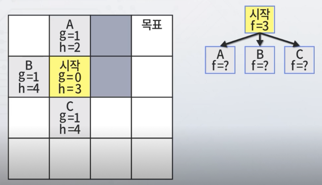 - 휴리스틱 함수 h(n)은 n으로부터 목적지까지의 거리를 예측함