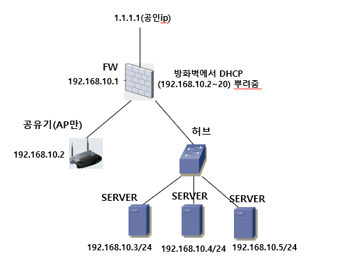 DHCP | 공유기에서 수행 | 방화벽에서 수행 |
