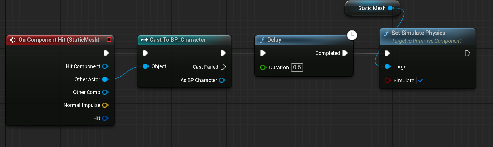 노드를 Component Hit으로 변경해주고, 스태틱메시에서 Simulation Generates Hit Events를 체크해주었다.