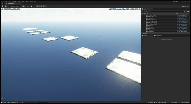 - 사용할 발판 에셋들 준비하고, 움직이는 발판, 아래로 떨어지는 발판은 bp클래스로 만들어 놓기