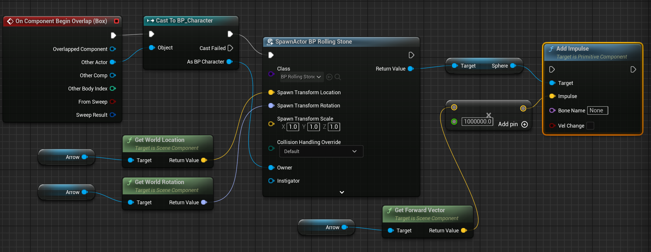 특정 바닥과 닿았을때 돌이 생성되는 트리거 구현