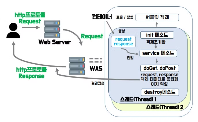 - 웹에서 동적인 페이지를 java로 구현한 서버측 프로그램으로 보면 된다.