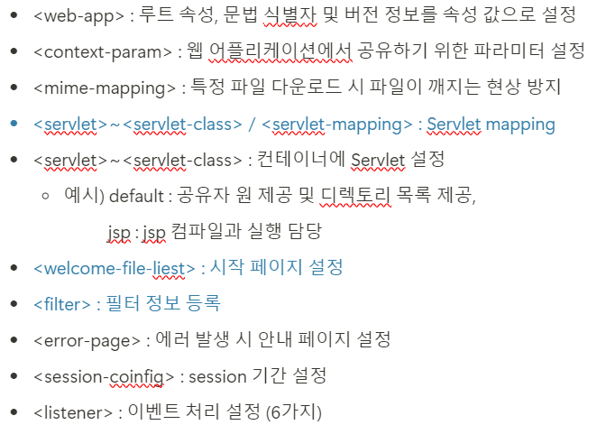 - 파일 내 설정 정보를 가지고 웹 컨테이너가 Servlet을 구동한다.
