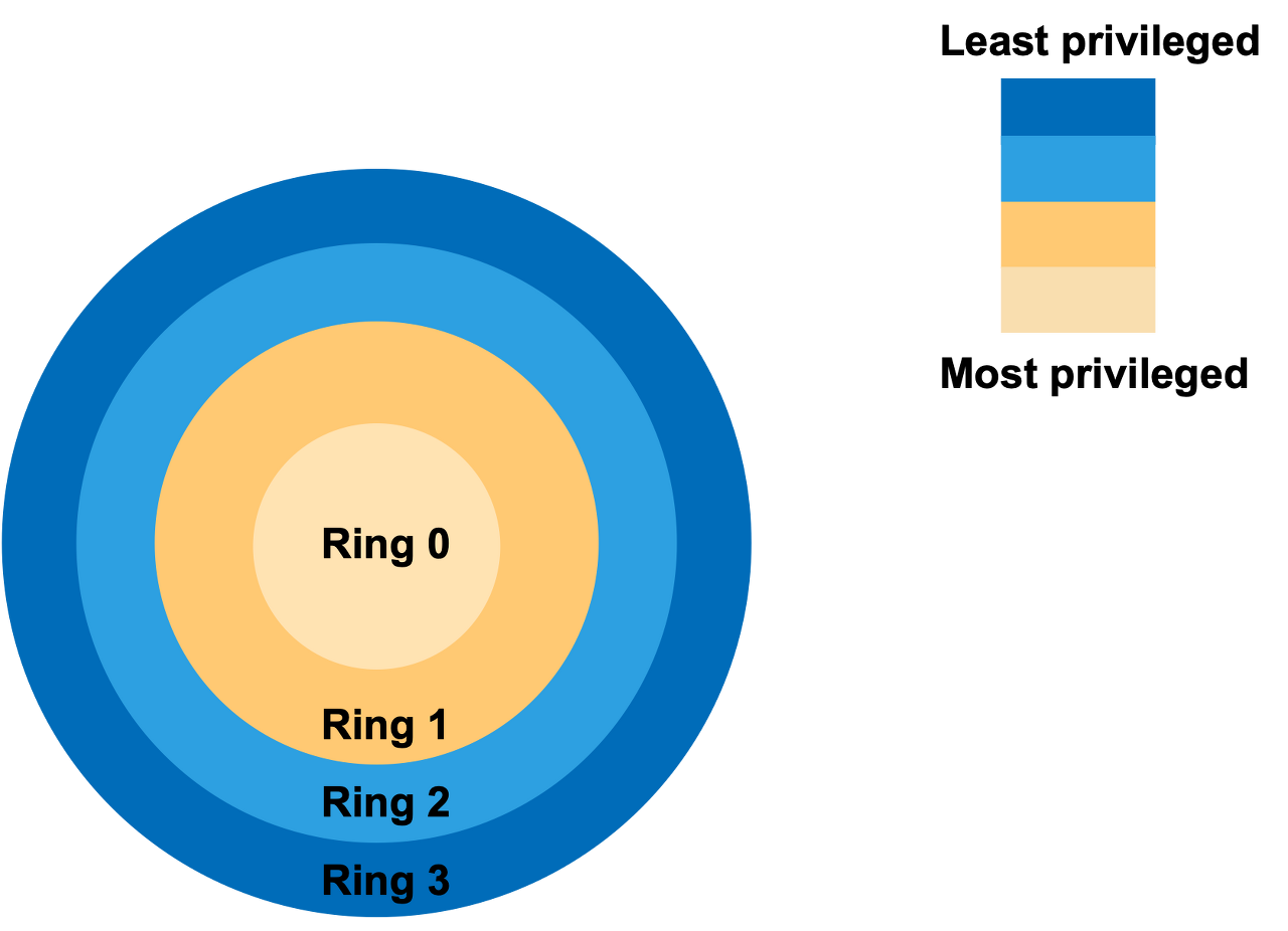 운영체제에는 User Mode와 Kernel Mode가 있다. 사용자 모드는 응용프로그램이 사용하는 영역이고, 커널 모드는 운영체제가 사용하는 영역으로 특정 권한이 필요한 명령어 수행이 가능하다. 이렇게 영역이 나뉜 이유는 보안을 위해서 중요 데이터에 영향을 끼칠 수 있는 명령어는 커널 모드에서만 수행되도록 하기 위함이다.