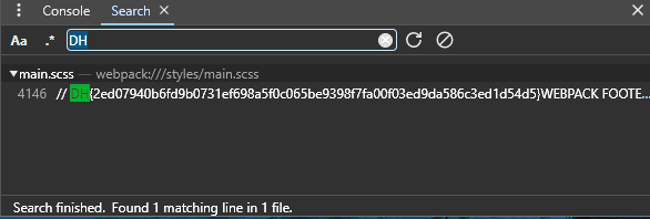 문제 파일이 여러개 존재하므로 개발자도구의 기능 중 하나인 전체 검색 (Crtl + Shift + F) 를 통해 현재 웹페이지를 구성하는 모든 소스파일들의 범위에서 전역적으로 검색을 수행할 수 있다.