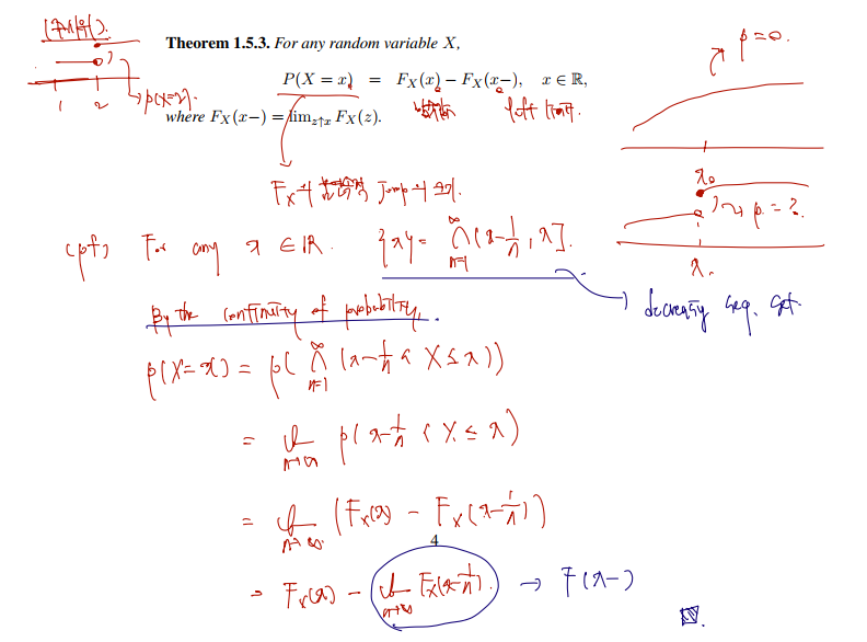 (P(X= x) = Fx의 불연속적 jump 의 크기 = Fx의 x에서 함숫값과 좌극한의 차임을 증명)