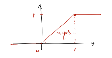 위는 X가 disc 할 경우이고, 아래는 X가 continuous value 일 경우이다. 예컨대 X가 구간 (a,b)에 속할 확률은 그 구간의 길이에 비례한다. 만약 구간이 (0, 1)이라면 0과 1 사이에서 cdf 는 y = x 증가함수를 따를 것이다.