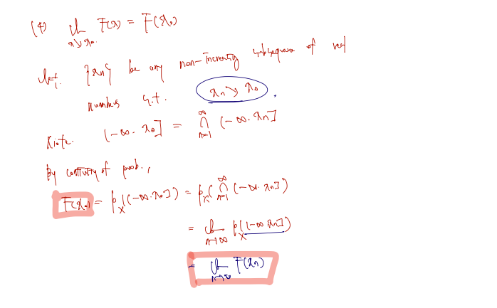 - limx↓x0F(x)=F(x0)(F is right continuous )