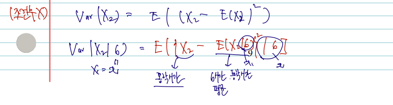 조건부분포의 pmf, pdf 말고 기댓값을 구할 수 있는데, 이 역시 X1= x2 은 고정해둔 채 X2의 기댓값을 구하는 것이다.