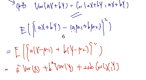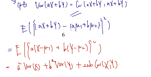 Var(aX+bY)=a2Var(X)+b2Var(Y)+2abCov(X,Y)