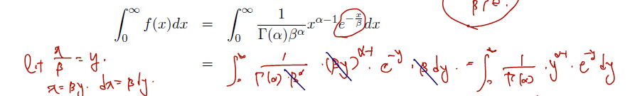 따라서, mgf 의 Y가 사실은 x의 합으로 표시되고, 이 형태가 감마함수에서도 남아있음을 보이면 된다.