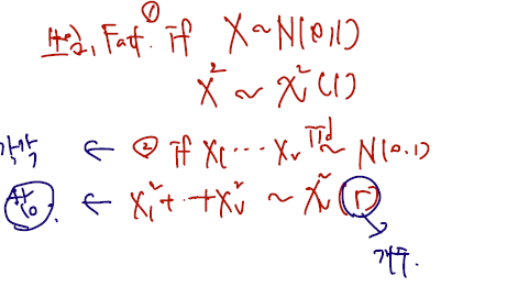 카이제곱 분포가 알려진 분포인 건, X를 N(0,1) 을 따르는 변수라 할 때 이들의 제곱의 분포가 카이제곱(1)의 분포를 따르기 때문이다. (아래 그림에서 쓰임 1.) 또한, X1부터 Xr까지 각각 i.i.d 하게 N(0,1)을 따르는 변수들의 합은 카이제곱(r)의 분포를 따른다. 이때의 카이제곱 parameter는 더해진 분포의 개수, r개로 정해진다.