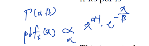 감마분포에서, x에 depend 하는 항만 적어보면 다음과 같으니 지수분포는 감마분포와 닮아있다고 할 수 있고, Γ(1,β) 과 같다고도 표현할 수 있다.