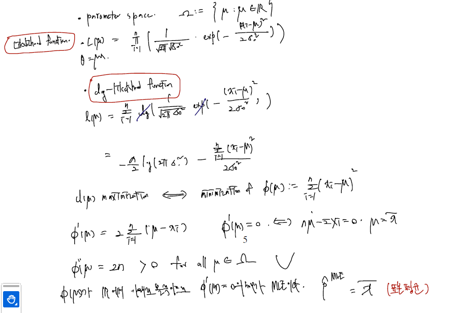 정규분포의 모평균에 대한 MLE 추정량이 표본평균임을 밝혀냈다.