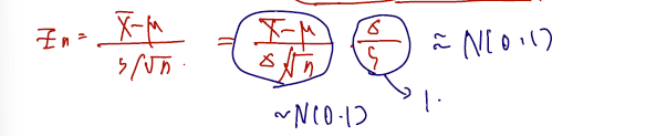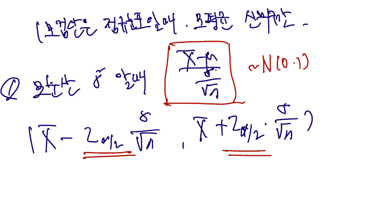이때에도 sample 들을 가지고 만든 표본평균에서 모평균을 빼고, 모분산으로 나눠준 이 새로운 확률변수는 N(0,1)을 따를 것이란 이론.