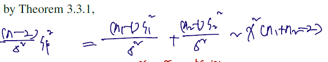 기존에 정의한 Sp와 카이제곱을 따르는 변수를 묶어 다음과 같이 쓴다. Sp를 포함된 식이, 카이제곱(n-2) 를 따른다고 결론지을 수 있다.