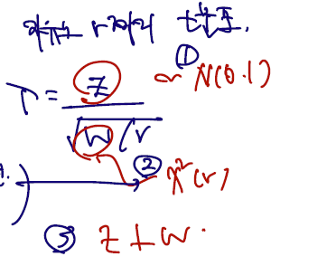 Sp에 분자에 있는 식들을 조금 조작하면 각각이 카이제곱을 따른다는 것을 알 수 있다. 이는 앞서서도 봤던 것이다. (스튜던트 정리 -c)