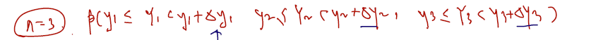 n = 3이라고 할 때 y1, y2, y3의 joint pdf 를 쓸 것이다. joint pdf 에 각 증분을 곱한 결과는 아래와 같다.