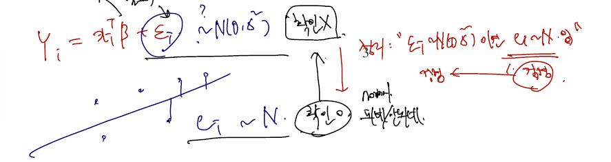 따라서 각 데이터 포인트들에서 회귀선까지의 error 들이 normal 을 따른다는 검정이 필요한 것이고..