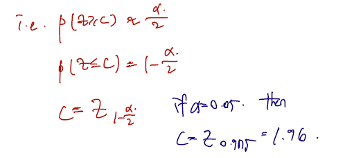 (sol) Intuitively, we may want to reject H0 iff Xˉ≤h or Xˉ≥k s.t. α=PH0(Xˉ≤h or Xˉ≥k)=PH0(Xˉ≤h)+PH0(Xˉ≥k). Since the asymptotic distribution of Xˉ is symmetric, we may prefer to find h and k such that PH0(Xˉ≤h)=PH0(Xˉ≥k)=α/2.